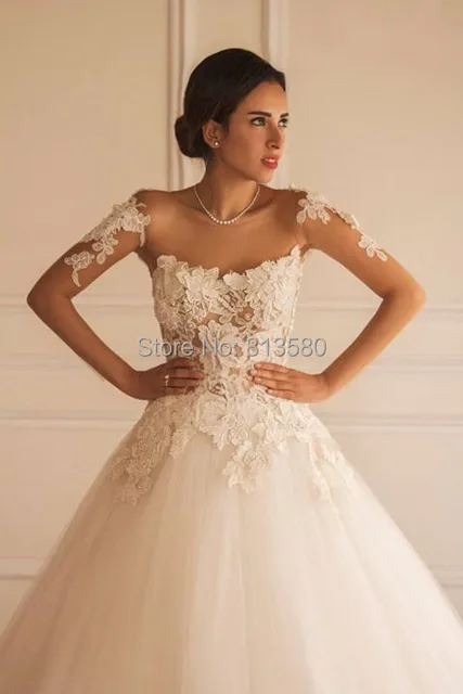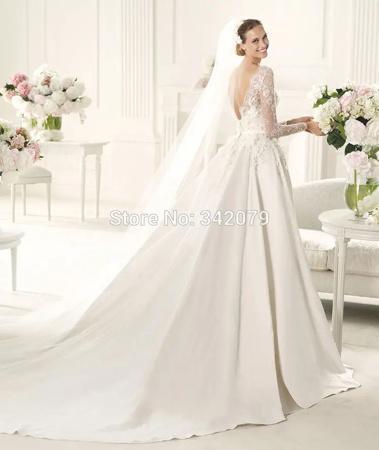 Vintage V Neck Cut Out Back Lace Up Long Bridal Gowns Charming White France Lace 3 4 Long Sleeve Ball Gown Wedding Dresses Princess Ball Gowns Princess Wedding Gowns From Saruidress 132 97 Dhgate Com Princess Cut Lace Wedding Dresses
