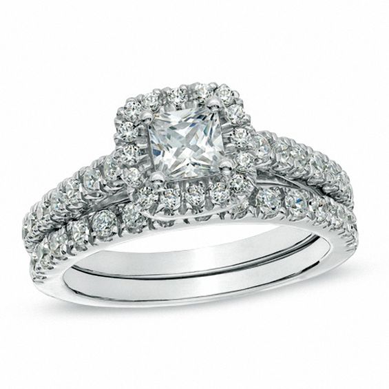 1 Ct T W Princess Cut Diamond Frame Vintage Style Bridal Set In Princess Cut White Gold Wedding Sets