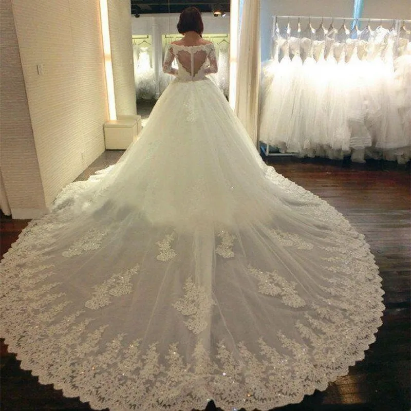Sexy Long Vintage Wedding Dresses 2017 Cathedral Train Lace Princess Expensive Wedding Dresses