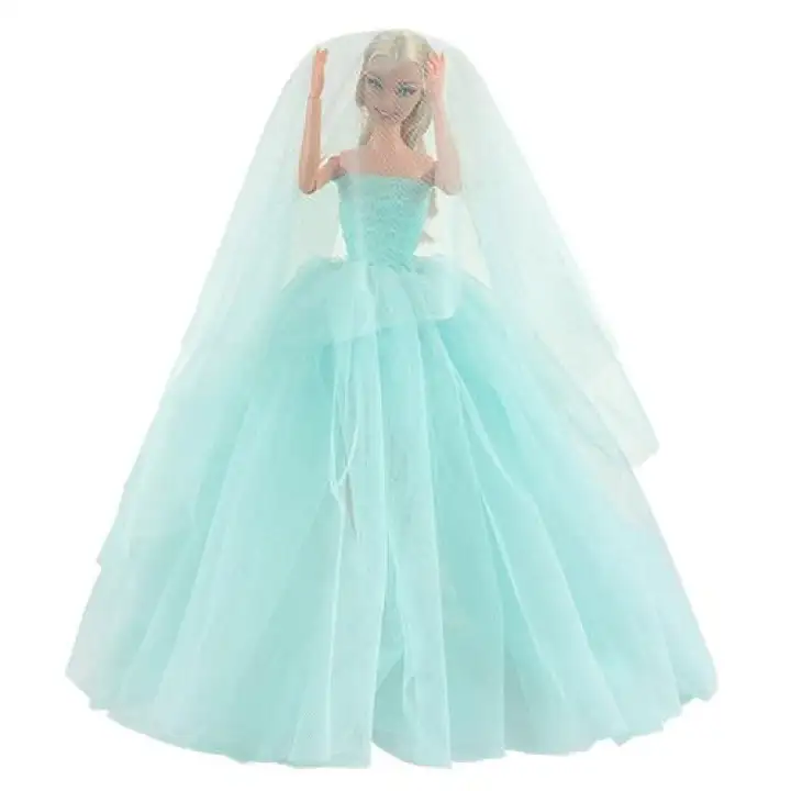Ball Gown Round Neck Sweep Train Light Blue Wedding Dress With Princess Light Blue Wedding Dresses