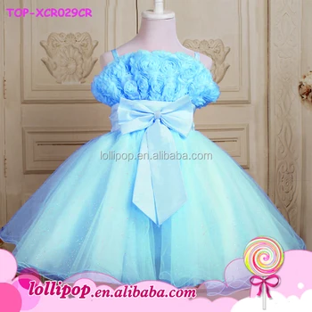 2016 Elegant Rosette Girls Embroidered Dress Light Blue Beautiful Princess Light Blue Wedding Dresses