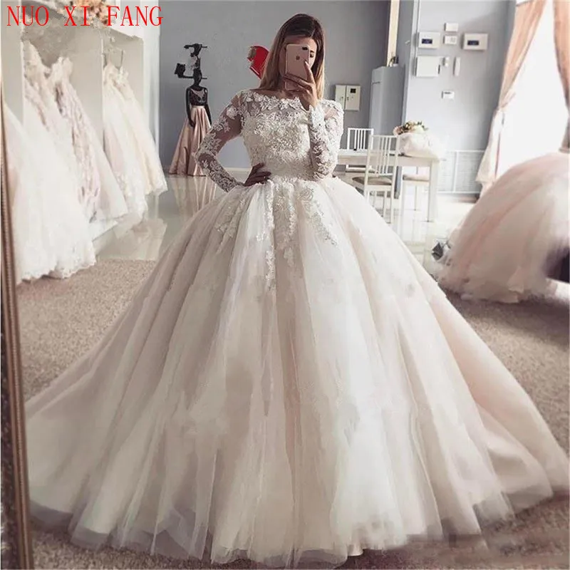 Luxury Princess Long Sleeve Wedding Dresses Fluffy Tulle Lace Princess Long Sleeve Luxury Wedding Dresses