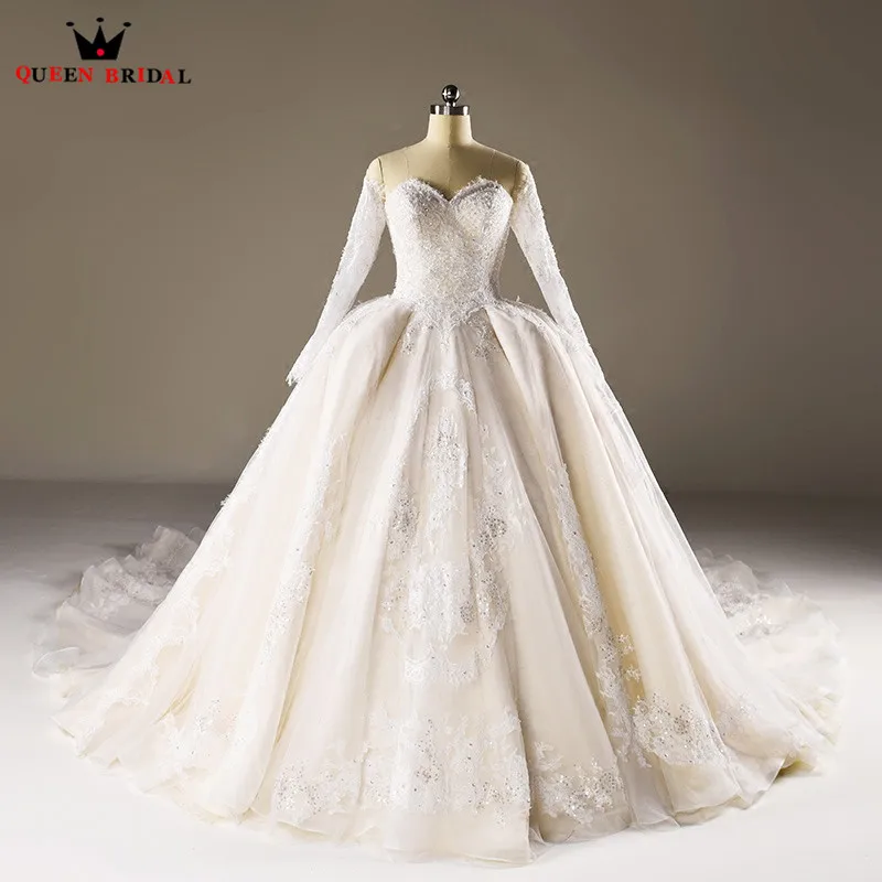 Long Gorgeous Luxury Champagne Gold Wedding Dresses Long Sleeves Princess Long Sleeve Luxury Wedding Dresses