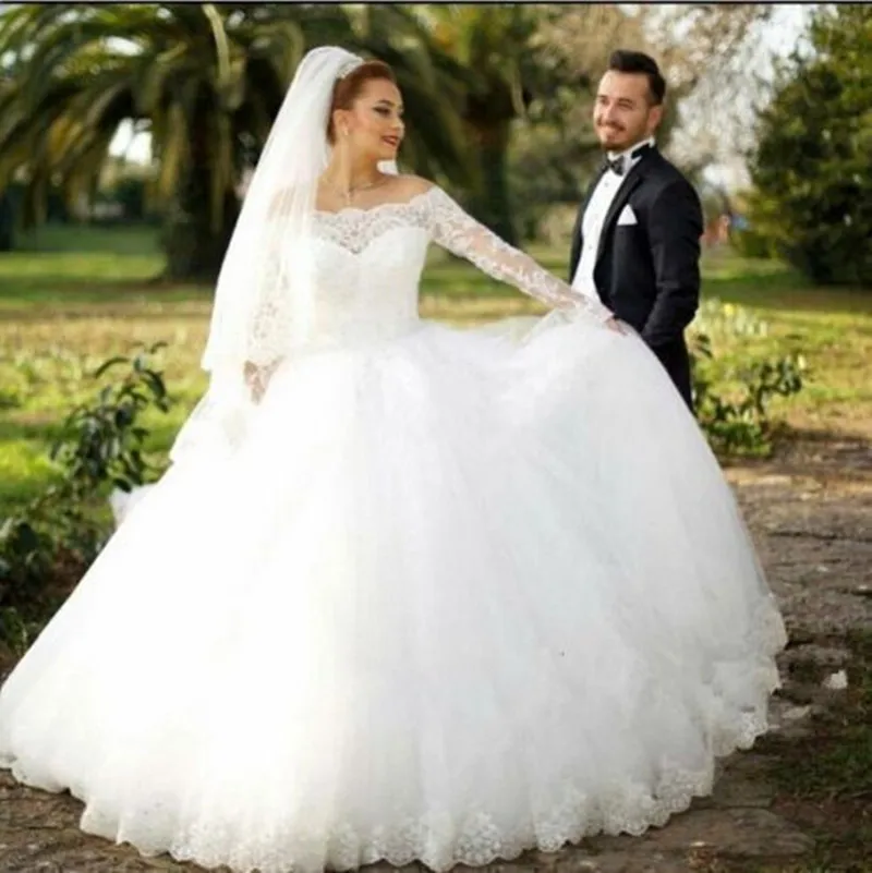 Gorgeous Lace Ball Gown Princess Wedding Dresses Long Sleeves Off Princess Long Sleeve Off The Shoulder Wedding Dress