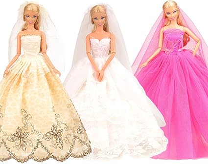 Amazon Com Barwa 3 Sets Doll Clothes Wedding Dress With Veil Princess Pink And White Wedding Dresses