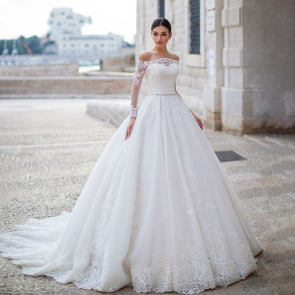 Xjly Princess Long Sleeve Lace Wedding Dresses Bridal Gown Princess Waist Wedding Dresses