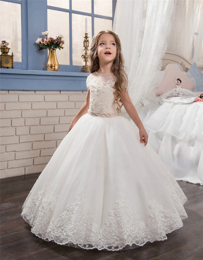 Cute Princess White Tulle Short Flower Girl Dress Vq Princess Wedding Cute Dress For Girls