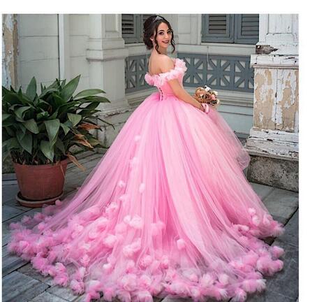 Romantic Pink Rose Wedding Dress Princess Ball Gown Quinceanera Princess Wedding Dress Pink Colour