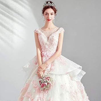 Pearl Pink Sweetheart Princess Wedding Dress With Lace Applique Princess Wedding Dress Pink Colour