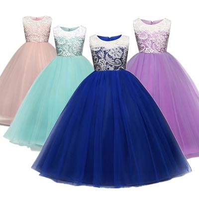 Kids Girl Wedding Party Long Embroidery Dress Princess Christmas Princess Wedding Dresses Blue And Purple