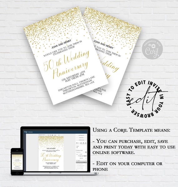 50 Year Anniversary Invitation Fiftieth Golden Wedding Anniversary 50t Printable 50th Wedding Anniversary Invitations