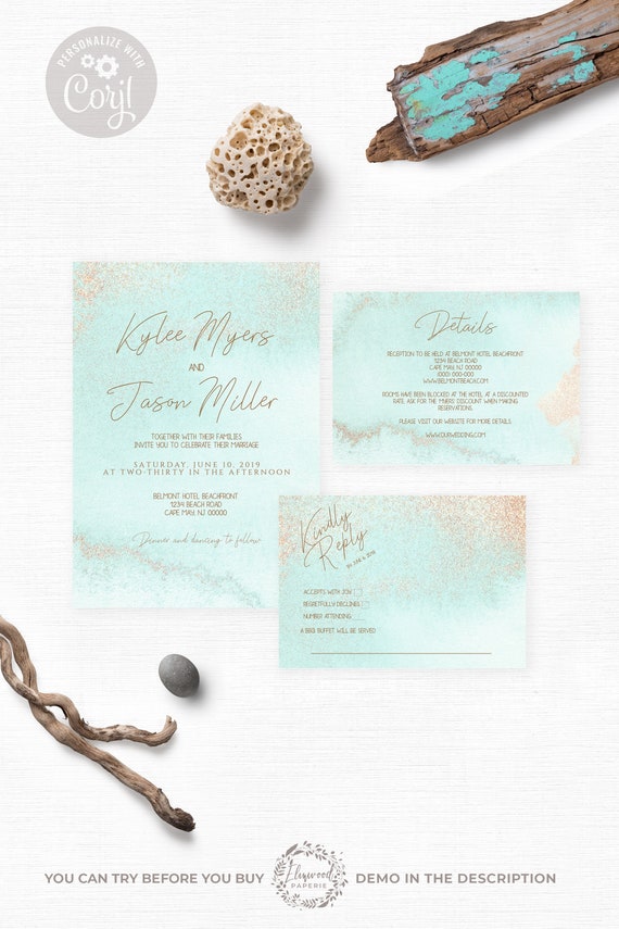 Beach Wedding Invitation Set Printable Template Instant Download Printable Beach Wedding Invitations