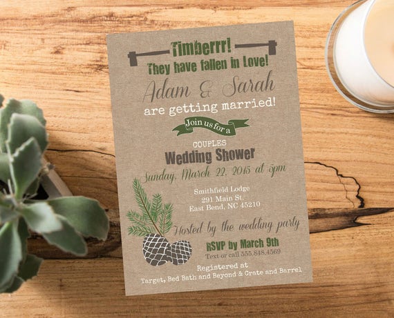 Rustic Lumberjack Couples Wedding Bridal Shower Invite Simple Printable Couples Wedding Shower Invitations