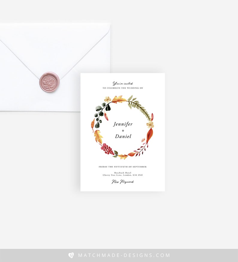 Rustic Wreath Wedding Invitation Printable Fall Wedding Etsy Printable Fall Wedding Invitations