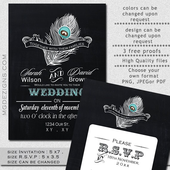Peacock Wedding Invitation Kit Includes Invite And Rsvp Printable Custom Peacock Wedding Invitations Turquoise Wedding Invitations Wedding Invitation Kits Printable Peacock Wedding Invitations