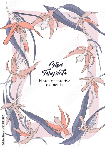 Floral Orchid Wedding Invitation Card Template Design Holiday Card Paper Printable Wedding Design Template Botanical Blossom Greeting Card Typography Vintage Printable Wedding Invitation Card