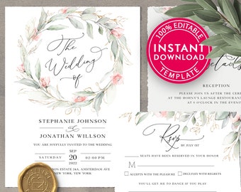 Wedding Invitation Suite Template Bundle Includes Wedding Programs For Wedding Invitations