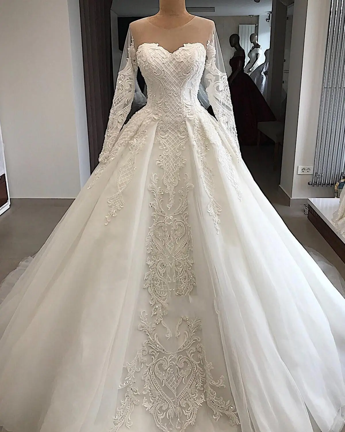 China Long Sleeves Bridal Gowns Puffy Tulle Lace Wedding Dresses Puffy Wedding Dresses With Sleeves