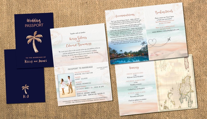 Rose Gold Passports Punta Cana Mexico Wedding Invitation Etsy Punta Cana Wedding Invitations