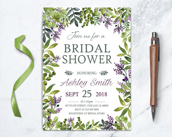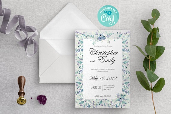 Blue Green Floral Wedding Invitation Template Download Blue Etsy Purple And Green Wedding Invitation Templates
