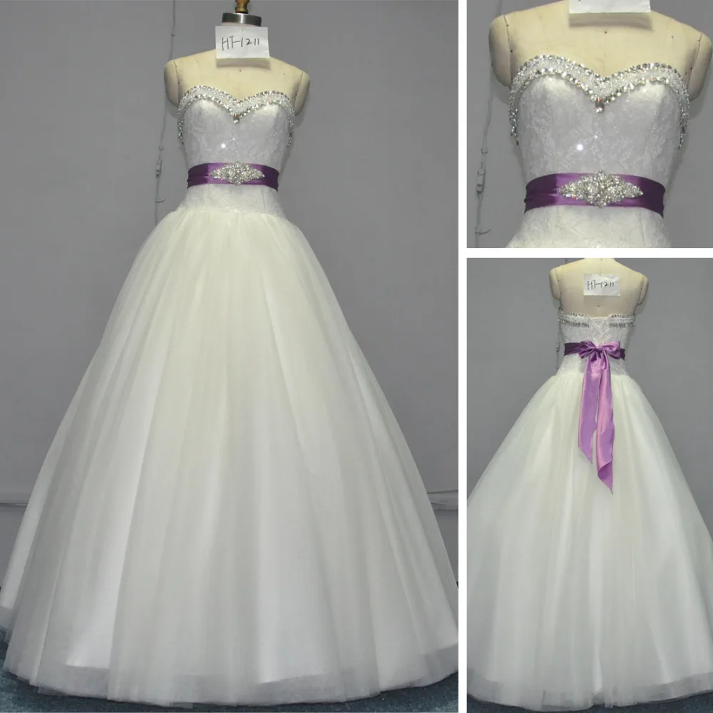 Ivory Lace Strapless Sweep Train A Line Wedding Dress Formal Prom Purple And Ivory Wedding Dress