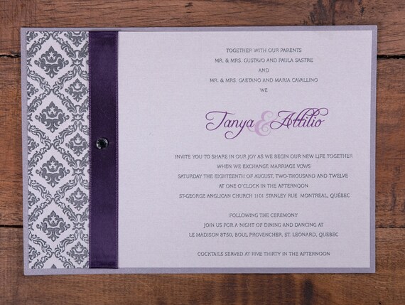 Purple And Silver Wedding Invitation Damask Wedding Etsy Purple And Silver Wedding Invitations