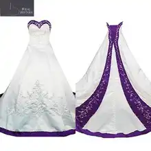 Real Pictures Purple And White Wedding Dresses Sweetheart Neck A Line Embroidery Formal Chapel Bridal Gown Lace Up Purple And White Weddings
