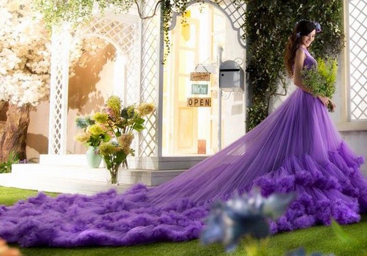 New Arrival Designer Applique Beading Lace Red Wedding Dress Purple Corset Wedding Dress