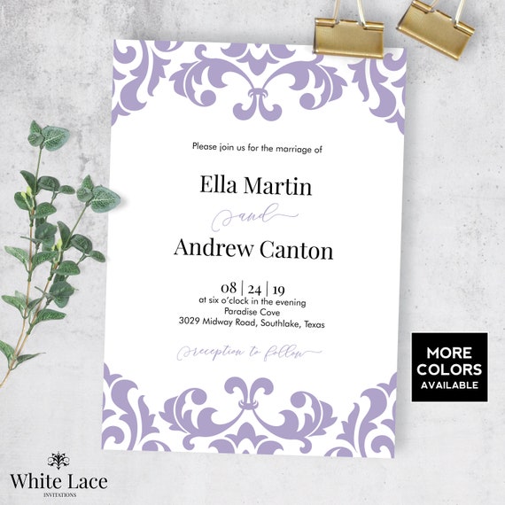 Purple Wedding Invitations And Wedding Ideas Purple Damask Wedding Invitations