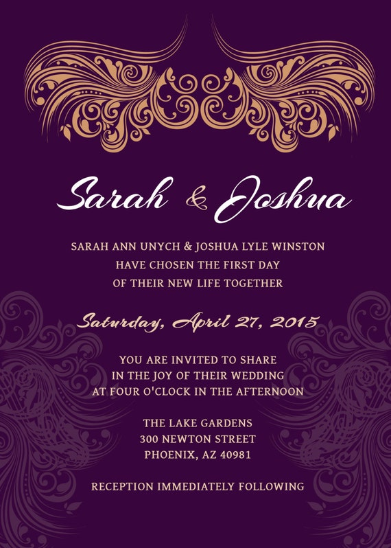 Purple And Gold Wedding Invitations Lemonwedding Purple Gold Wedding Invitations