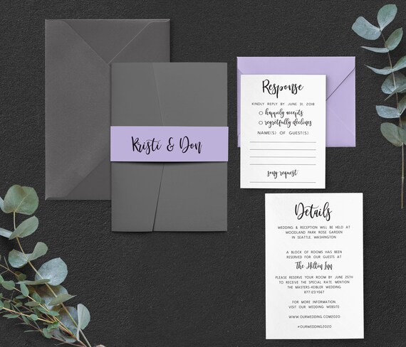 Purple And Grey Boarding Pass Wedding Invitation Card Purple Grey Wedding Invitations