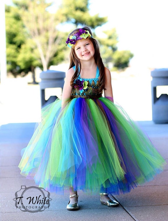 Peacock Tutu Dress Flower Girl Jr Bridesmaid Birthday Wedding Purple Peacock Wedding Dress