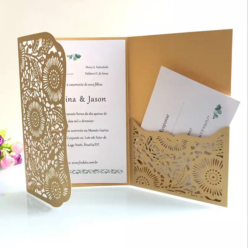 Purple Pocket Fold Metallic Lace Wedding Invitation With Crystal Purple Pocket Wedding Invitations