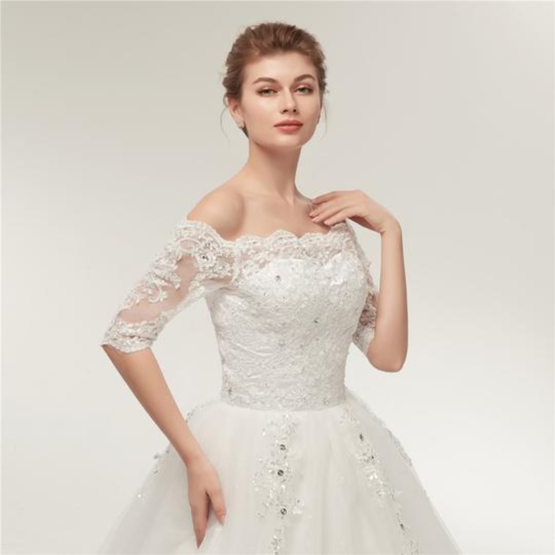 Prewedding Quarter Sleeve Lace Wedding Dress 16w 22w With Boat Quarter Sleeve Lace Wedding Dress