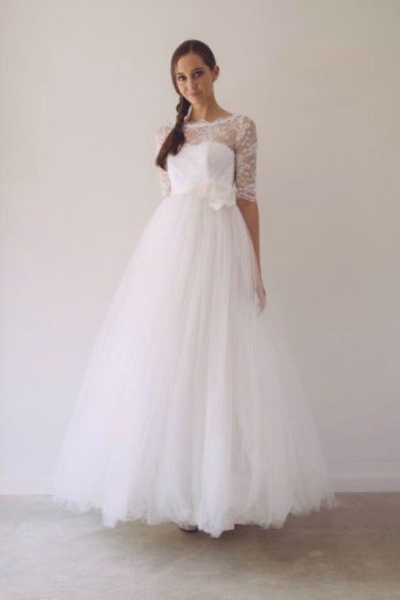 Imogen Ivory White Lace Tea Length 3 4 Sleeve Wedding Dress Uk Quarter Sleeve Wedding Dress