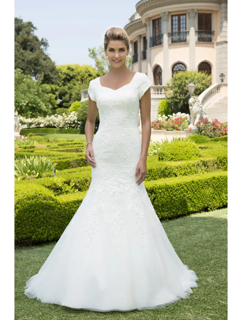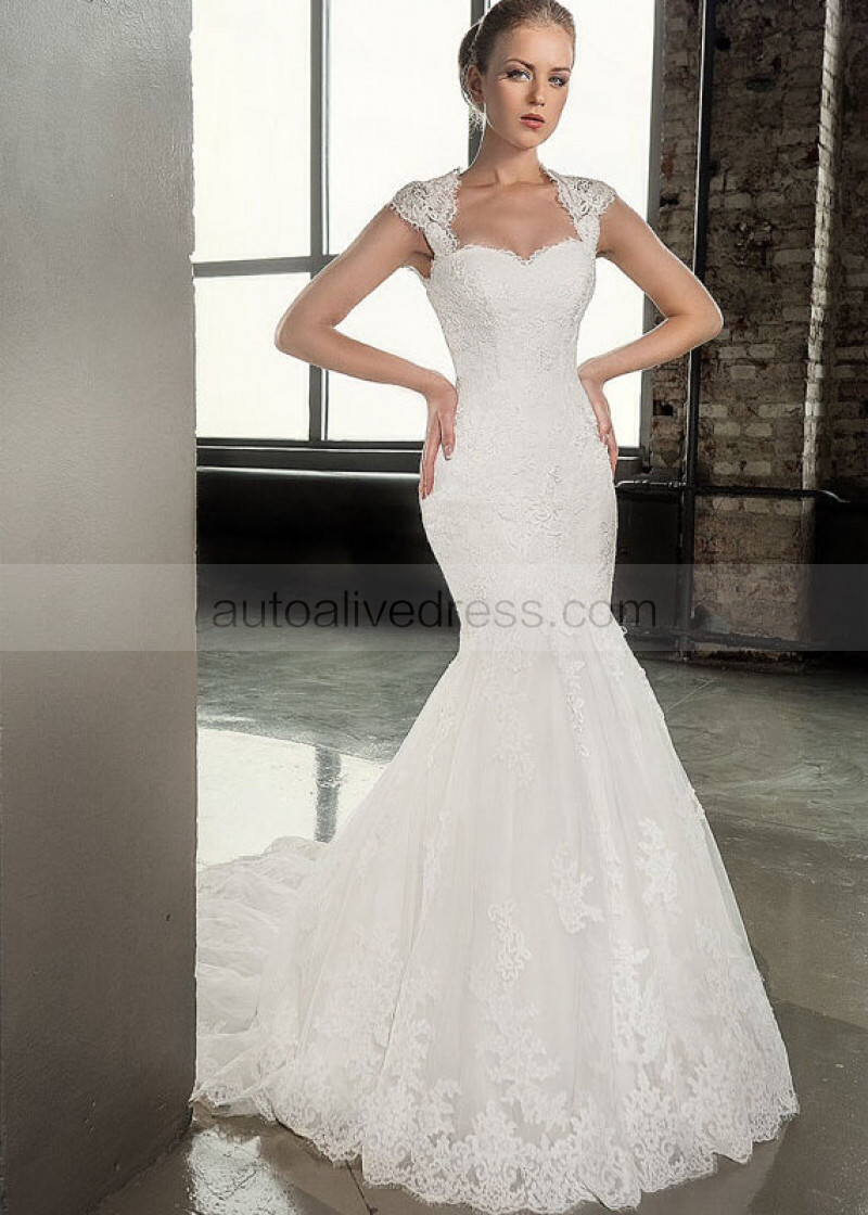 Best A Line Wedding Dresses Elegant Lace Tulle Queen Anne Queen Anne Neckline Mermaid Wedding Dress