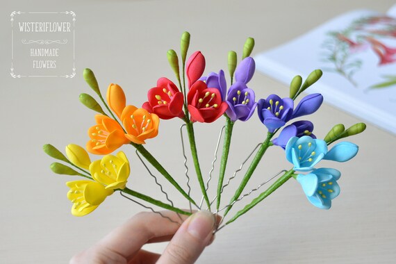 Rainbow Tulip Hair Stick Rainbow Flower Hair Fork Hair Stick Rainbow Wedding Accessories