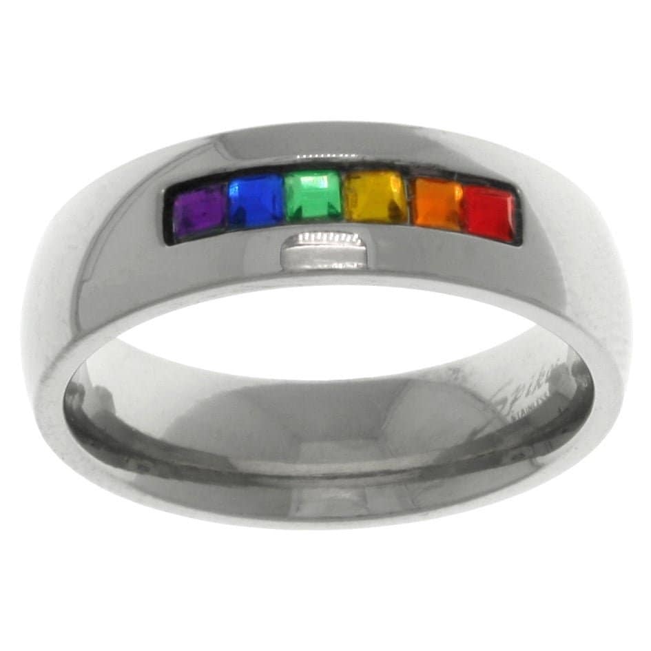 Shop Stainless Steel Rainbow Cubic Zirconia Gay Pride Wedding Band Rainbow Wedding Ring