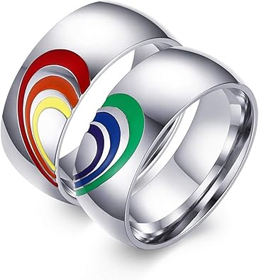 Lesbian Pride Rainbow Ring W Middle Cz Center Stone Steel Ring Rainbow Wedding Rings