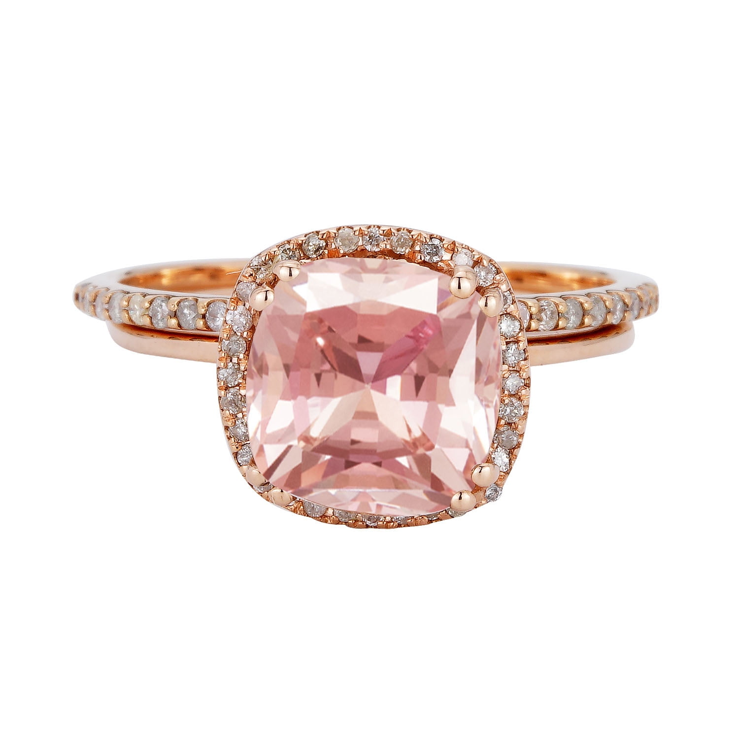 Artdeco 1 5 Carat Cushion Cut Real Morganite And Moissanite Bridal Wedding Ring Set With Engagement Ring And Wedding Band In 18k Gold Over Silver Walmart Canada Real Wedding Ring Sets