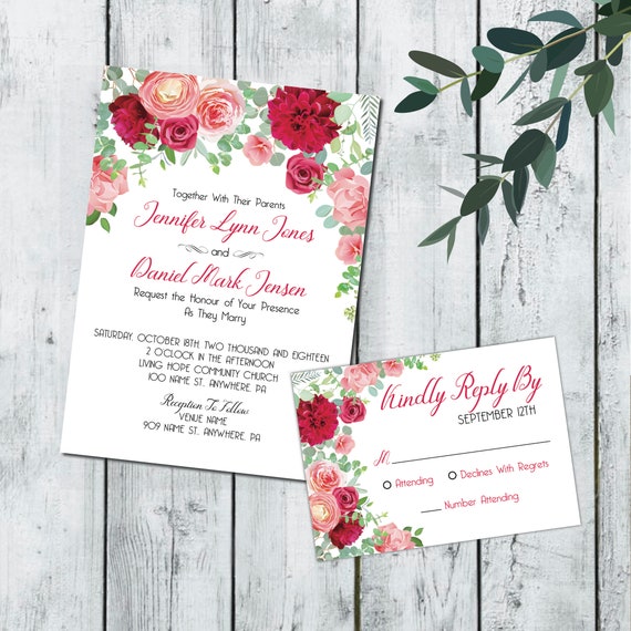 Burgundy Red Pink Floral Modern Geometric Wedding Invitation Red And Pink Wedding Invitations