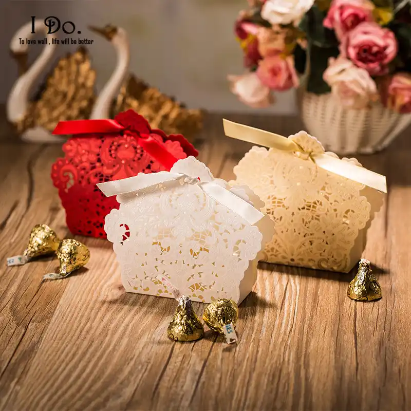 Free Shipping 100pcs Red White Laser Cut Wedding Favor Boxes Red And White Wedding Favors