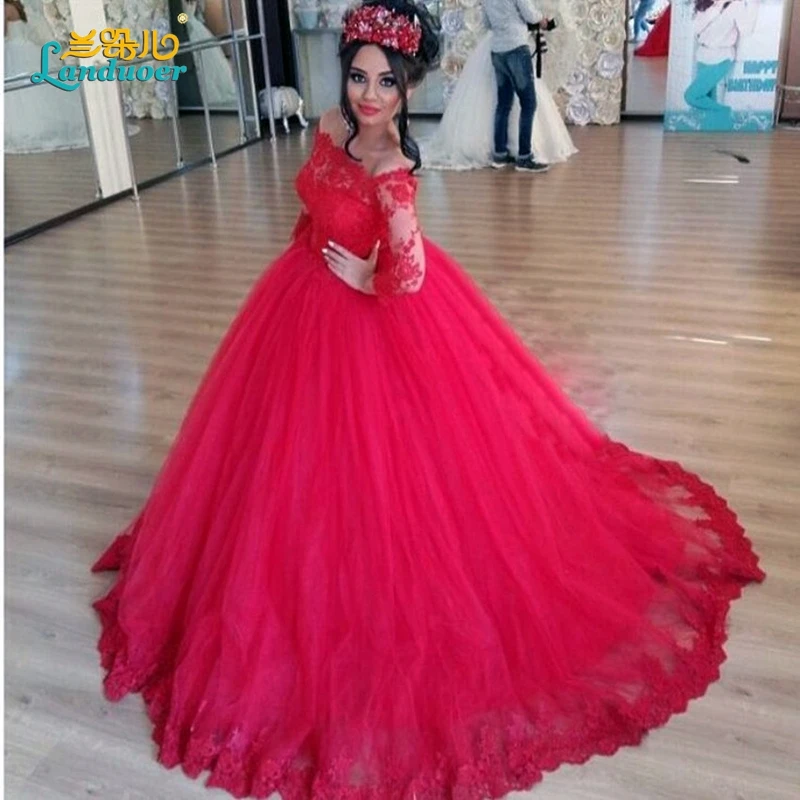 Beautiful Slim Bride In A Red Wedding Dress Fashion Romantic D Red Arab Wedding Dress