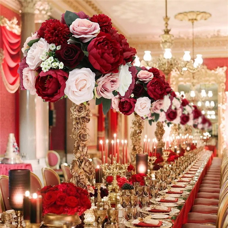 Amazon Com Zooyoo Artificial Flowers Dark Red Roses 50pcs Wedding Red Centerpieces For Weddings