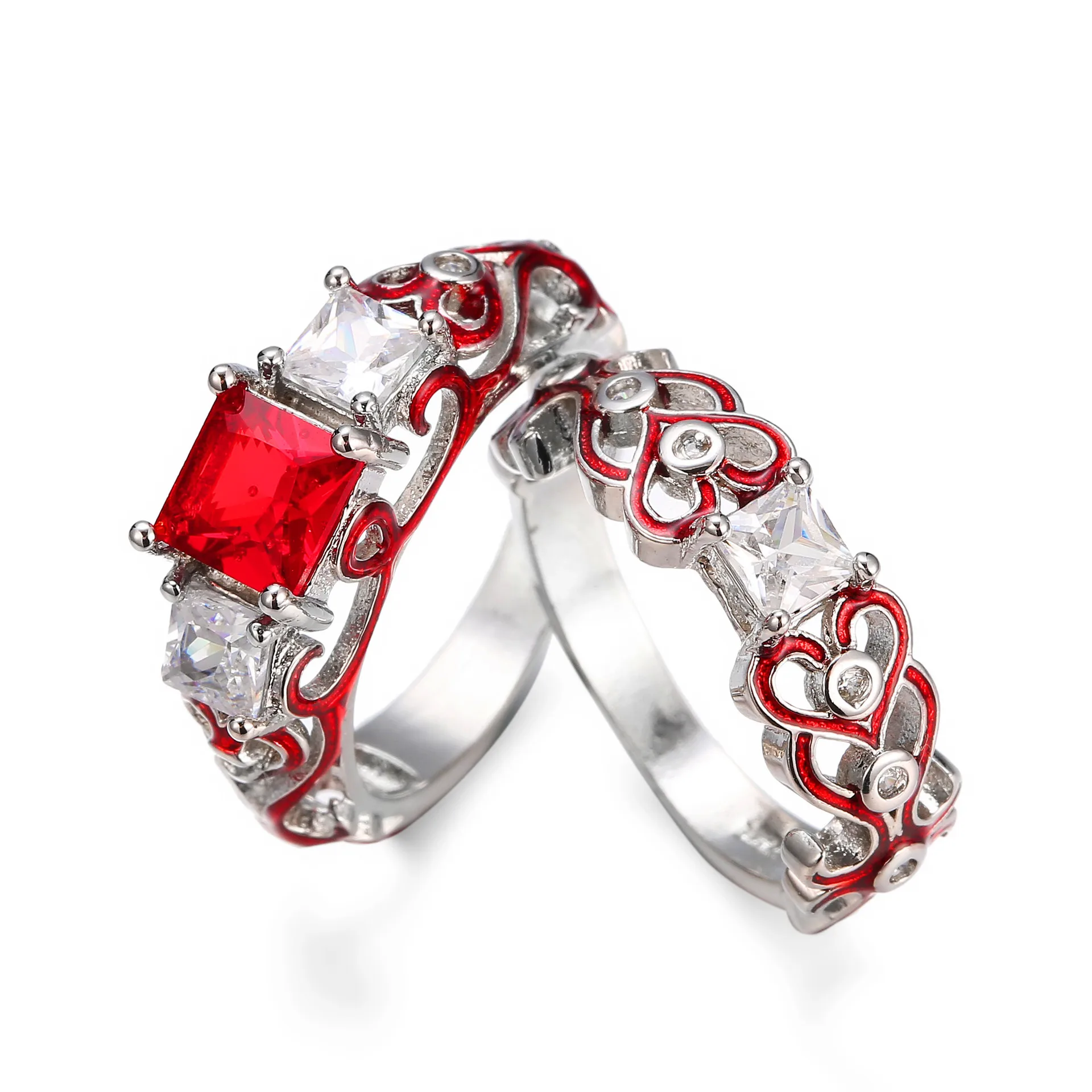 Princess Cut Infinity Diamond Engagement Ring With Ruby In 18k Red Diamond Wedding Ring
