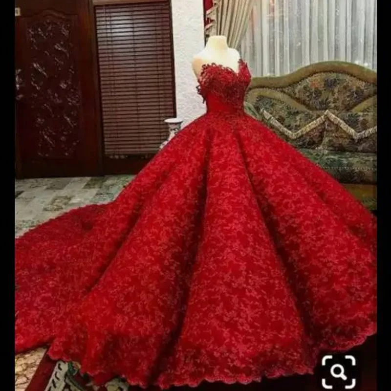 Gorgeous Vintage Red Lace Wedding Dresses 2019 Beaded Appliques Red Lace Wedding Dress
