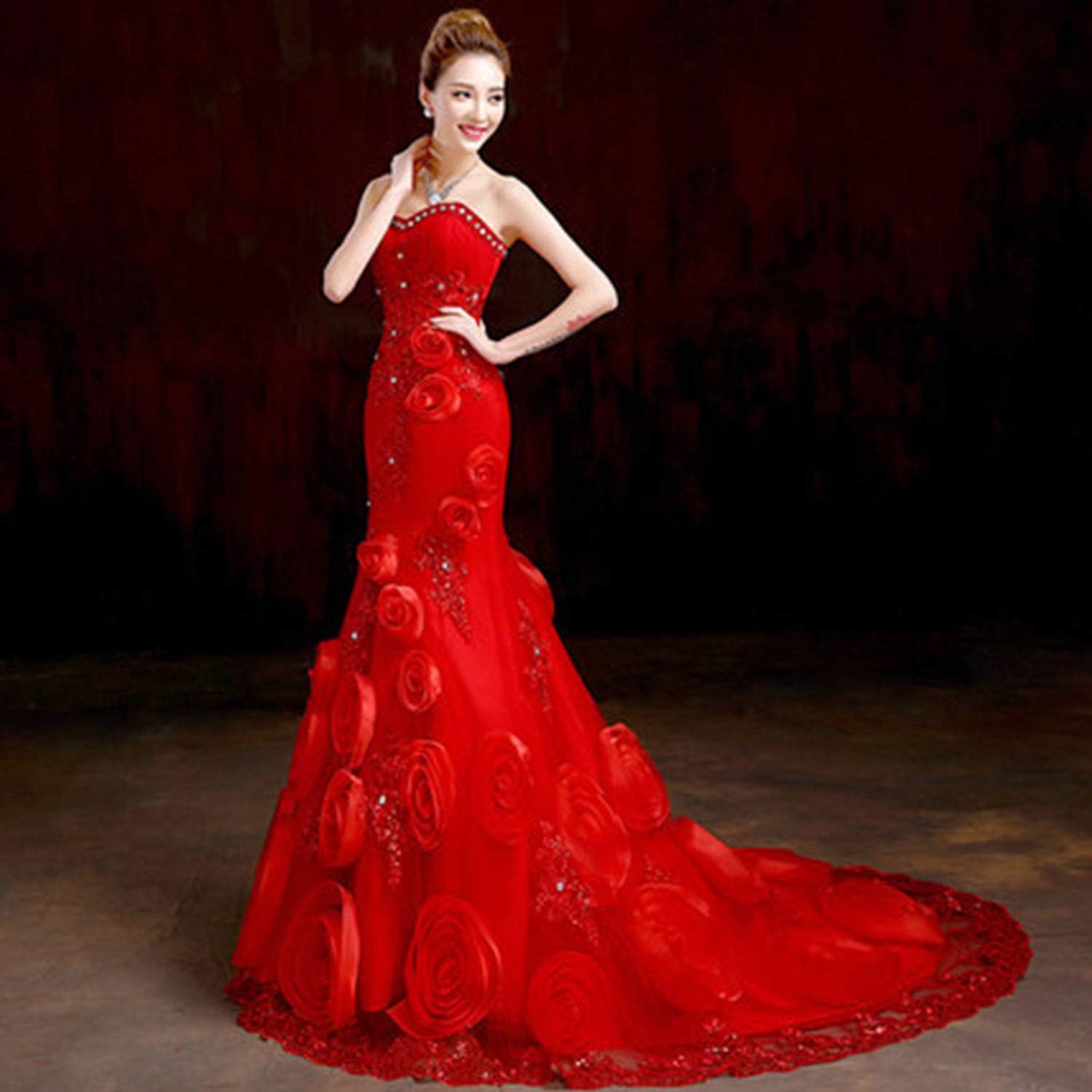 Amazon Com Wzcxyx Wedding Dress Red Lace Sexy Strapless Evening Red Strapless Wedding Dresses