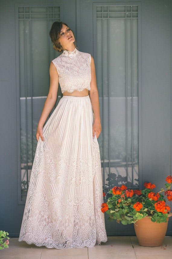 Bohemian Lace Wedding Dress Dancing Wedding Dress Two Piece Etsy Revealing Lace Wedding Dress