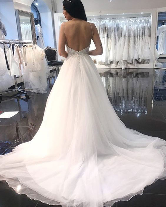 Spaghetti Strap Sweetheart Neckline A Line Wedding Dress With Rhinestone Straps For Wedding Dress