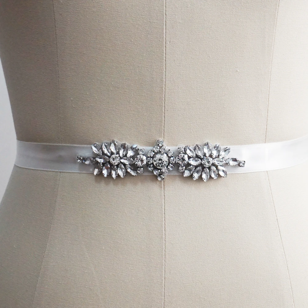 Rhinestone Wedding Belt Sash With Satin Ribbon Crystal Wedding Rhinestone Wedding Dress Belts